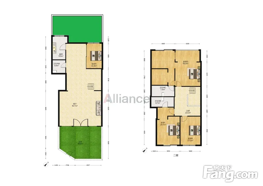 青羊2.5环临河别墅【1跃2带双花园60㎡】可装电梯