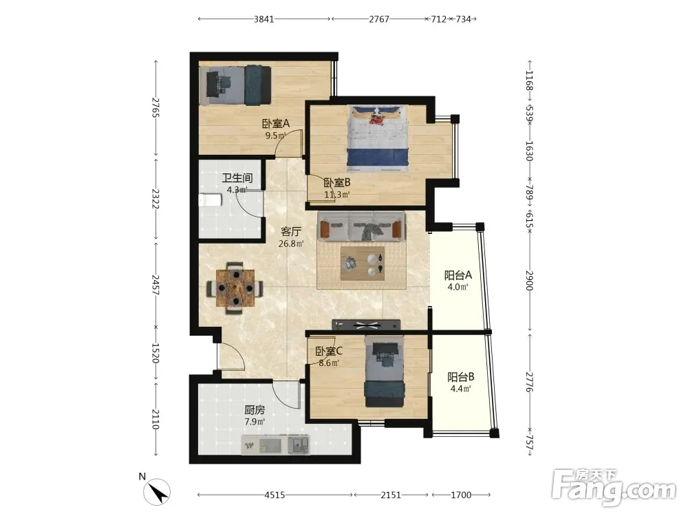 户型齐全,主打明卫,双阳台三居