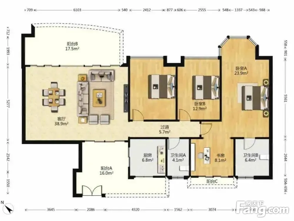 房屋拥有相对宽松的尺寸,布局通透,动静分离,设计豪华