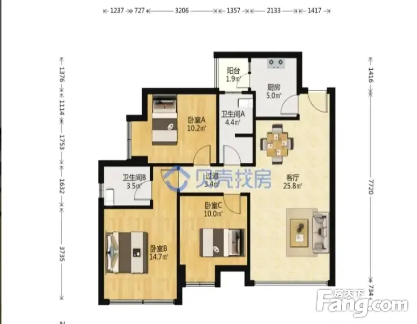 3室1厅2卫