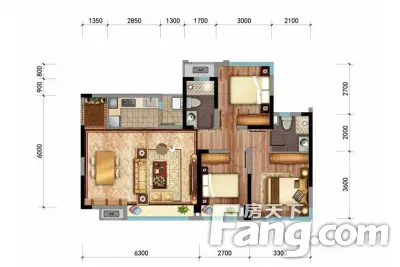户型齐全,主打观景飘窗,干湿分离三居