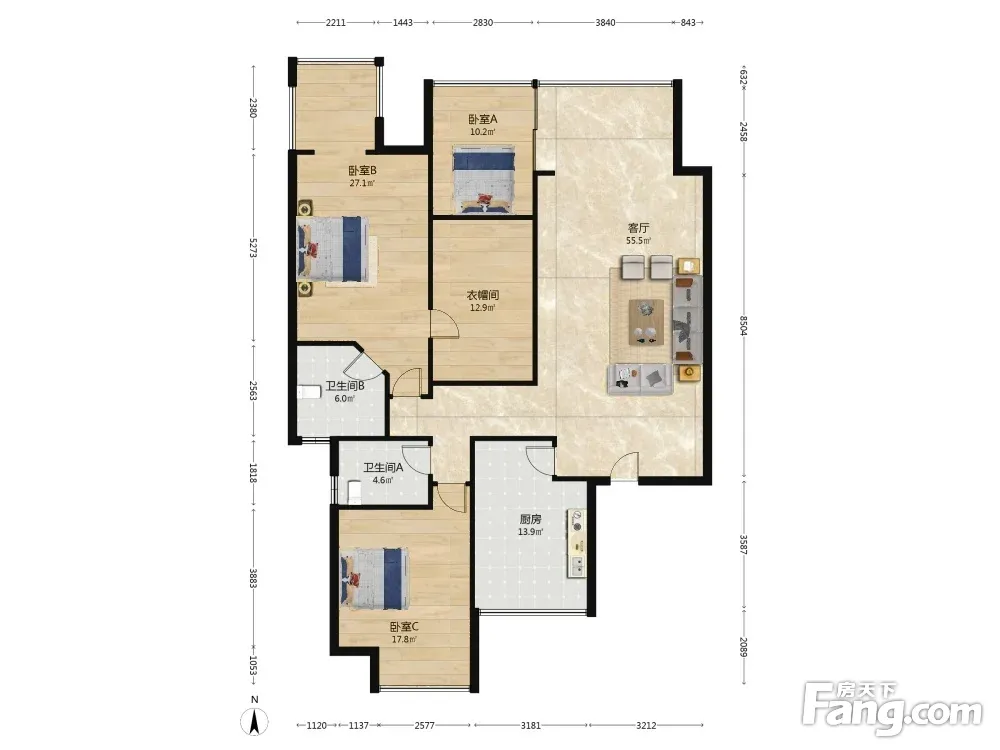 3室1厅2卫