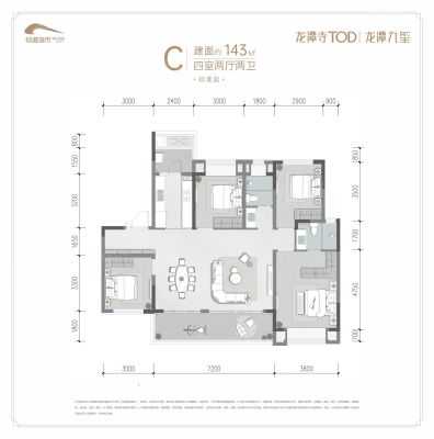 龙潭寺TOD·龙潭九章户型主要有125平-143平的全明格局,户型方正的四居 、115平-119平的户型方正,动静分离的三居 。