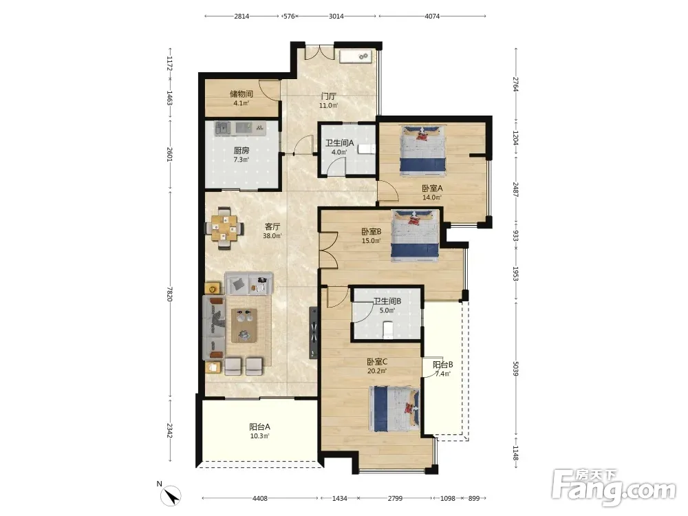 户型齐全,主打户型方正,明卫三居