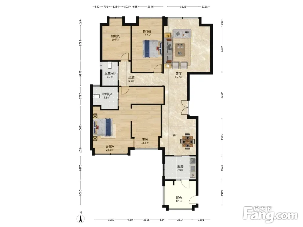 户型齐全,主打独立衣帽间,明卫,明厨,客厅朝南,全明格局四居