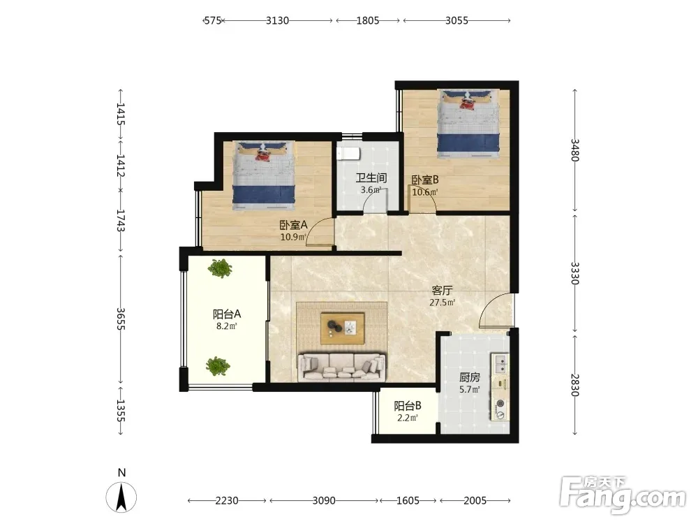 2室1厅2卫
