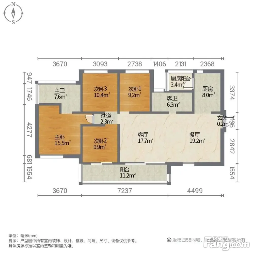 房屋户型方正,景观布局合理,设计实用,空间舒适,格局优越,采光通风良好