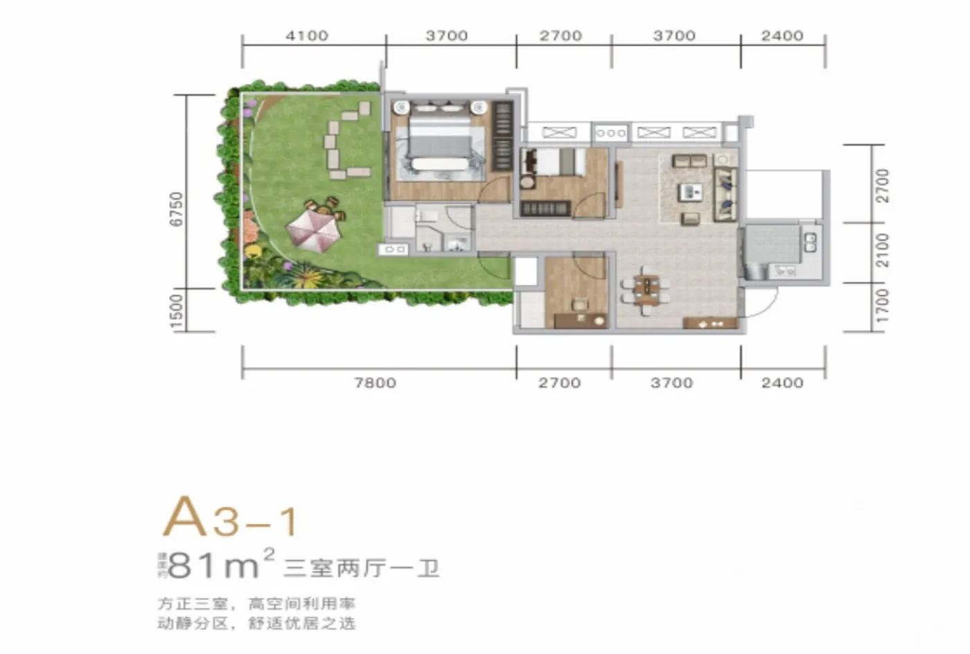 户型齐全,主打全明格局,户型方正三居