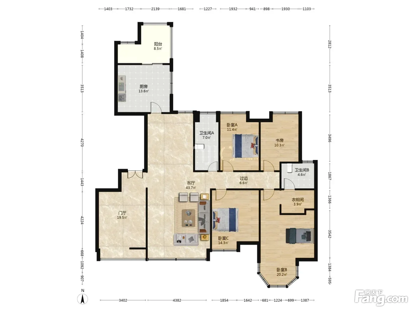 户型齐全,主打独立衣帽间,明卫,明厨,客厅朝南,全明格局四居