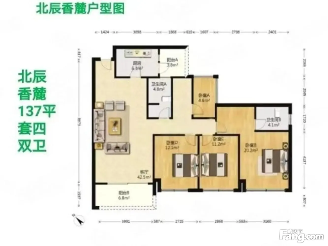 北辰香麓户型主要有136平-146平的主卧带卫,户型方正,全明格局,干湿分离的四居 、106平-117平的主卧带卫,户型方正,全明格局,干湿分离的三居 。