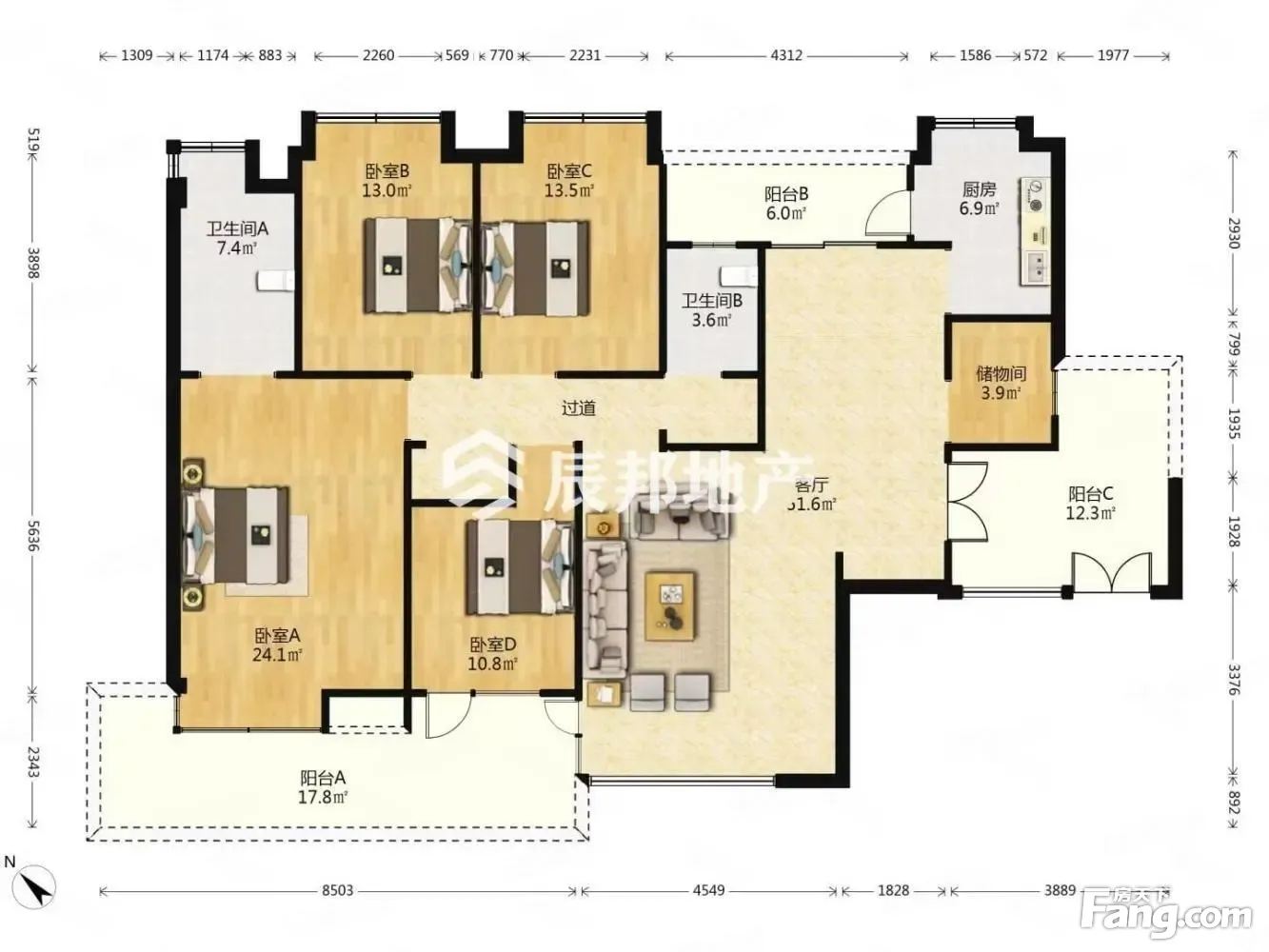 房屋户型方正,景观布局合理,设计实用,空间舒适,格局优越,采光通风良好