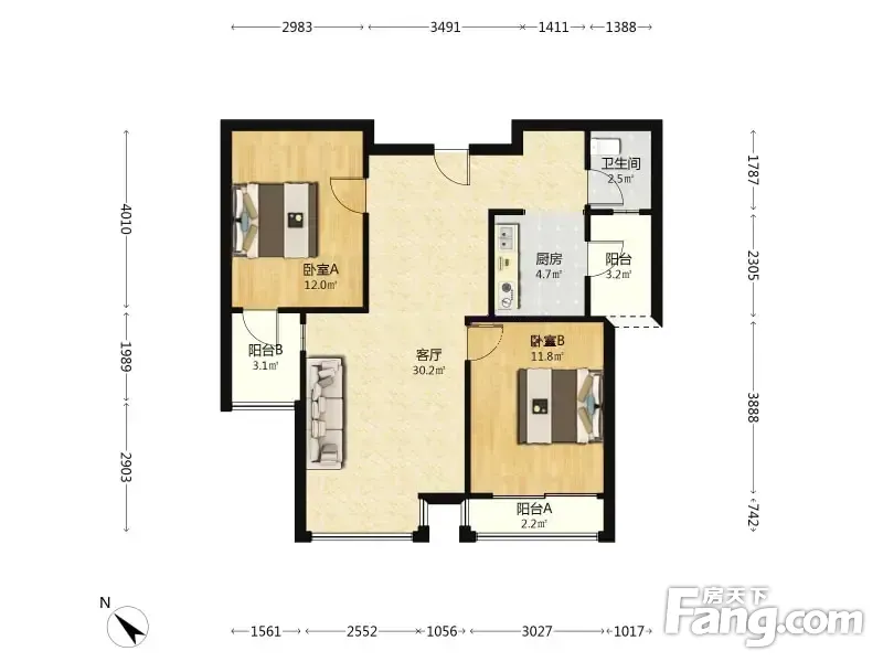 优品道三期 2室1厅 88.44平