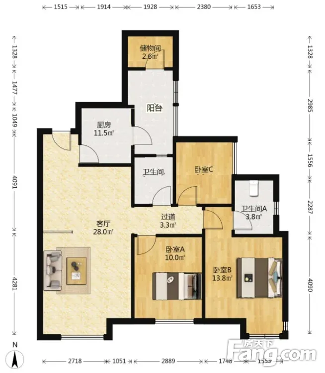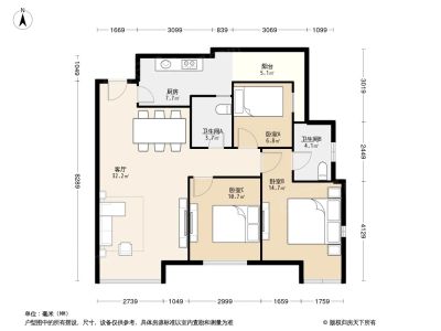 户型齐全,主打客厅朝南,户型方正,明卫三居