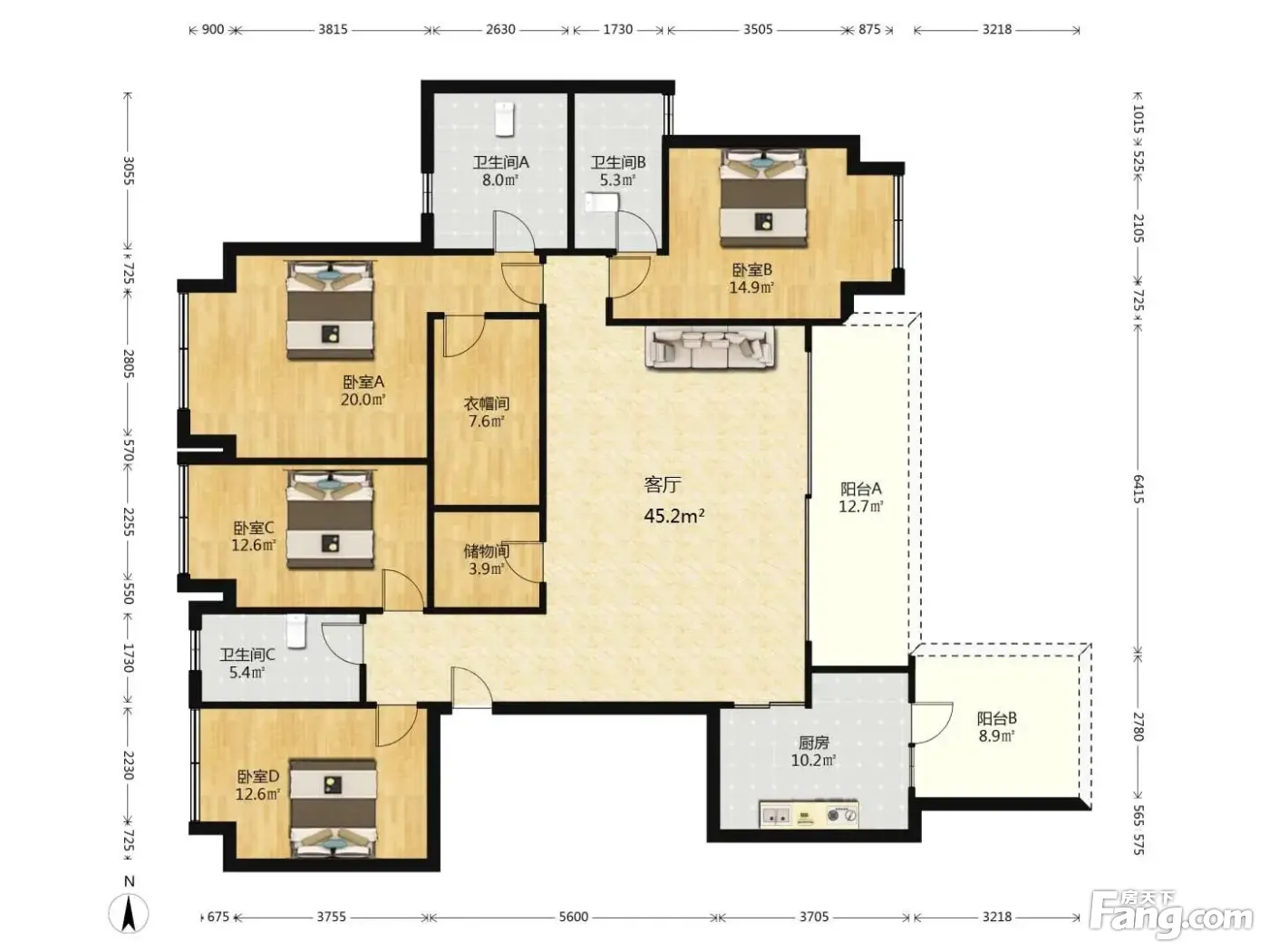 户型齐全,主打独立衣帽间,明卫,双阳台四居