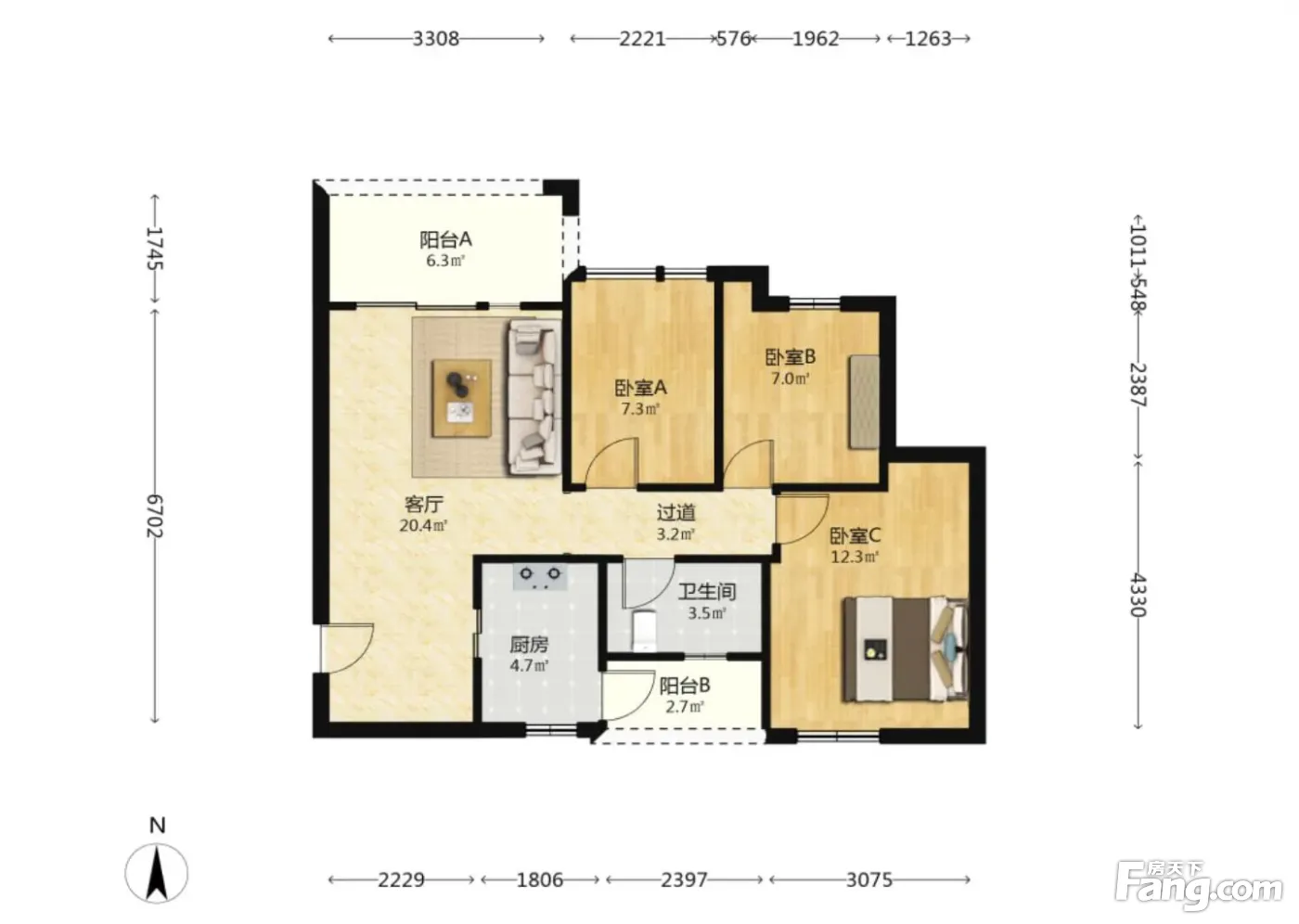 3室2厅1卫