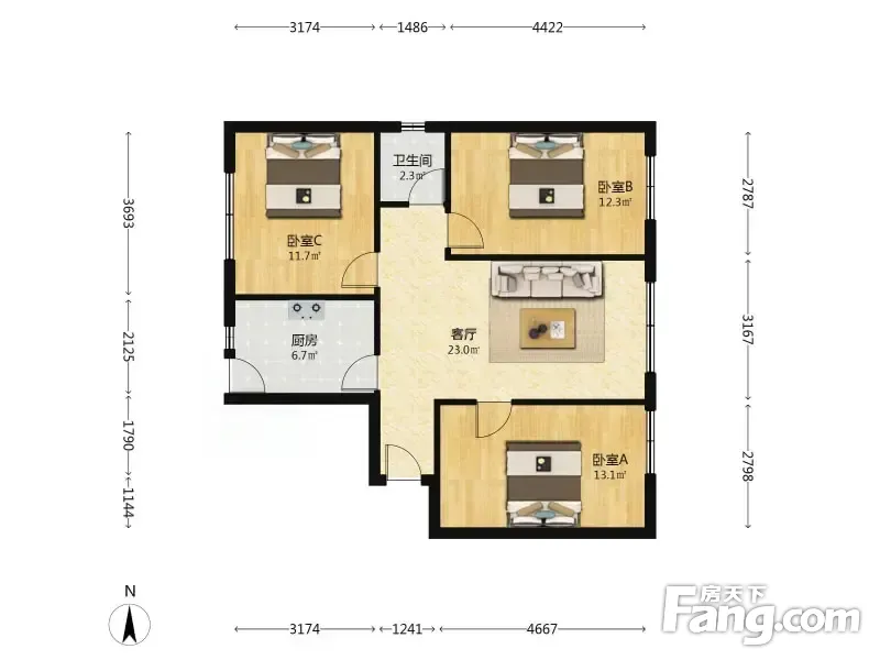 贝森兴苑 3室1厅 89.29平