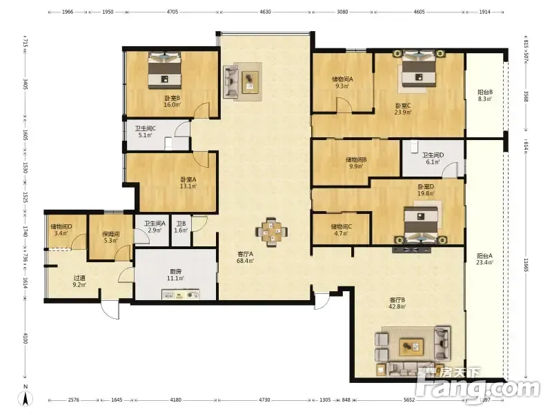 万科金色海蓉三期 4室2厅 348.6平