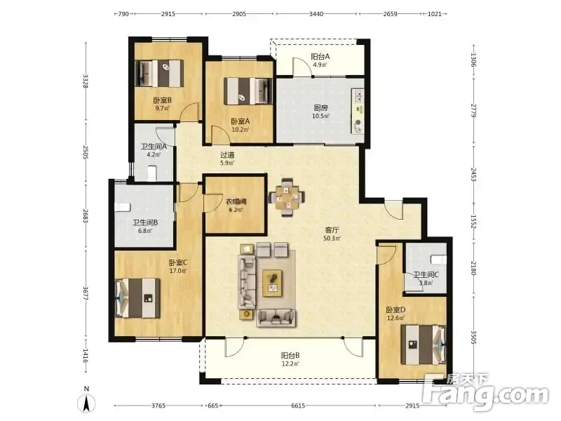房屋拥有相对宽松的尺寸,布局通透,动静分离,设计豪华