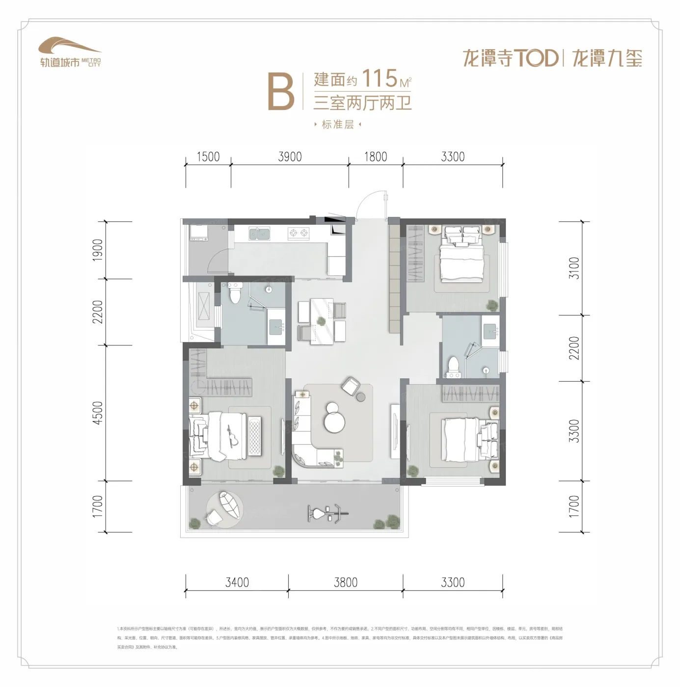 龙潭寺TOD·龙潭九章 115平3居 南北向毛坯 安静不临街
