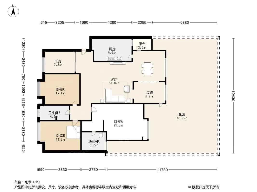 *获取完整户型报告,同时会有免费语音讲解服务