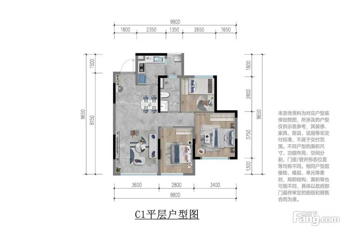 户型齐全,主打户型方正,动静分离三居