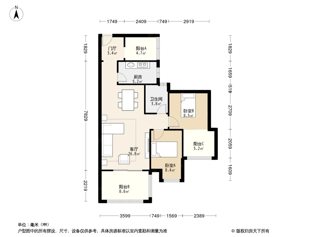 户型齐全,主打户型方正,明卫三居
