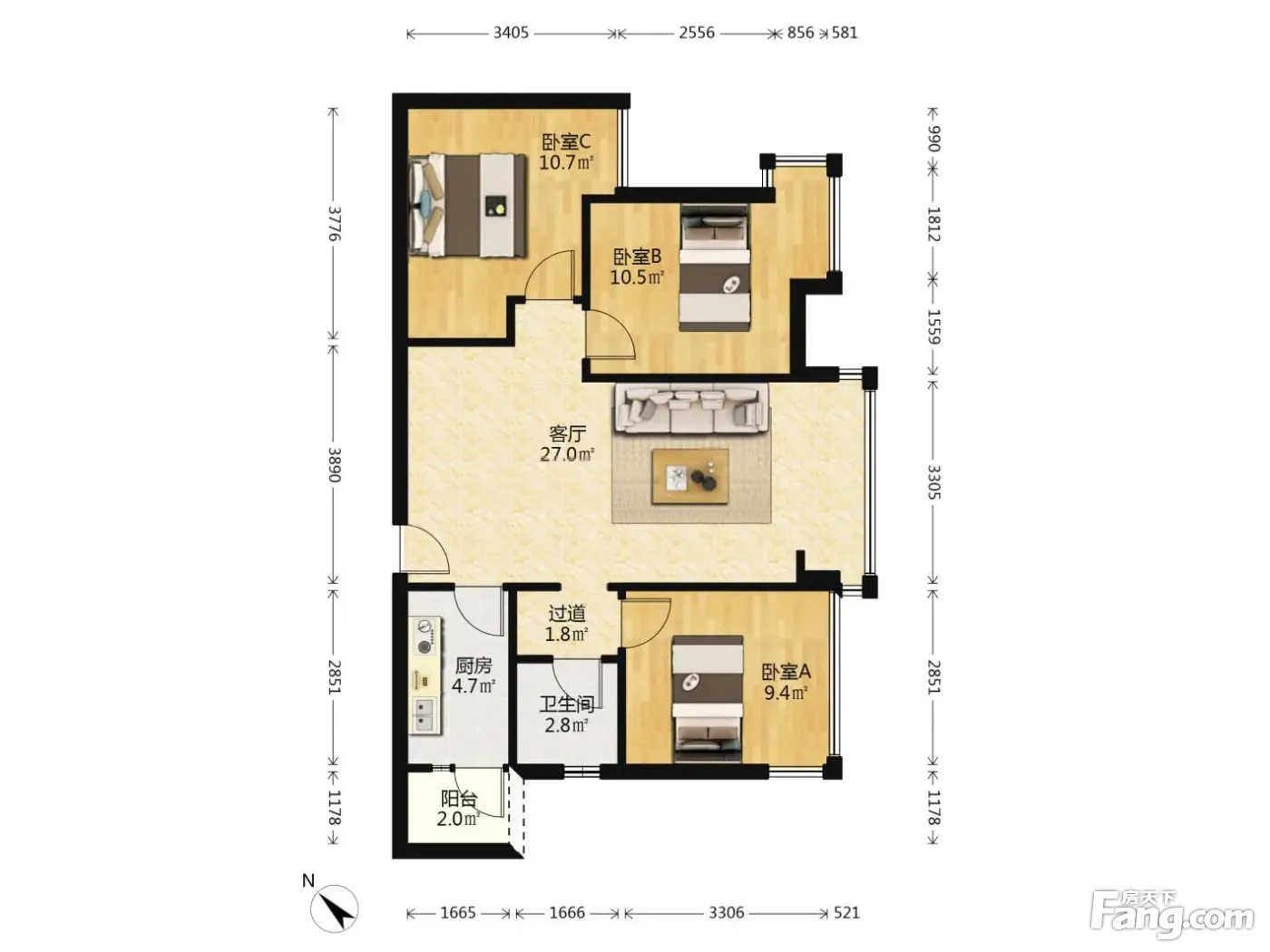 3室2厅1卫