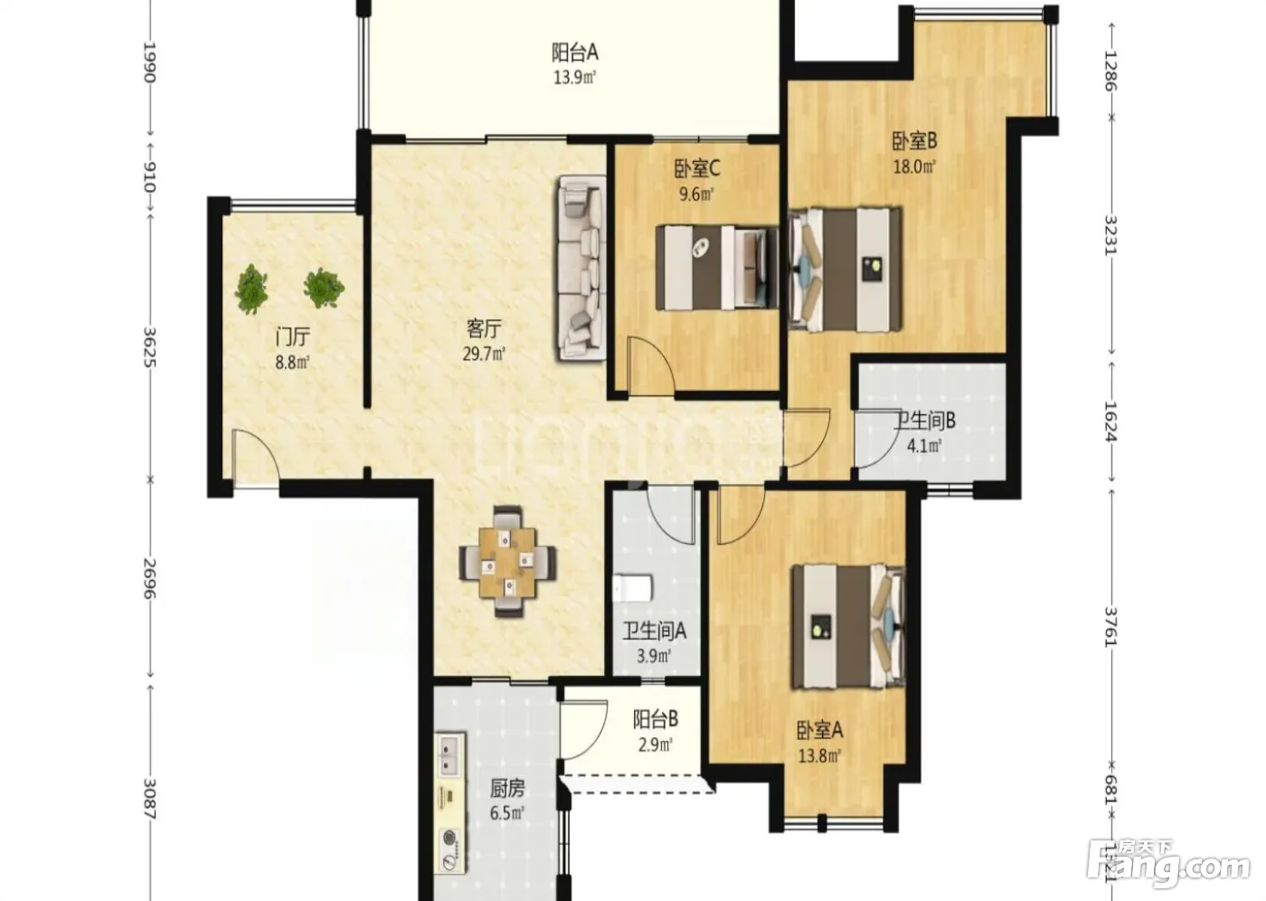 户型齐全,主打户型方正,明卫,双阳台,主卧朝南三居