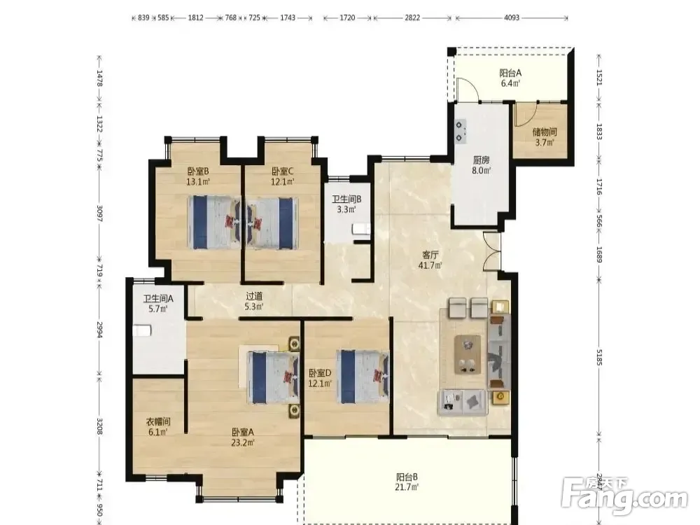 户型齐全,主打明卫,独立衣帽间,客厅朝南,双阳台,主卧朝南四居
