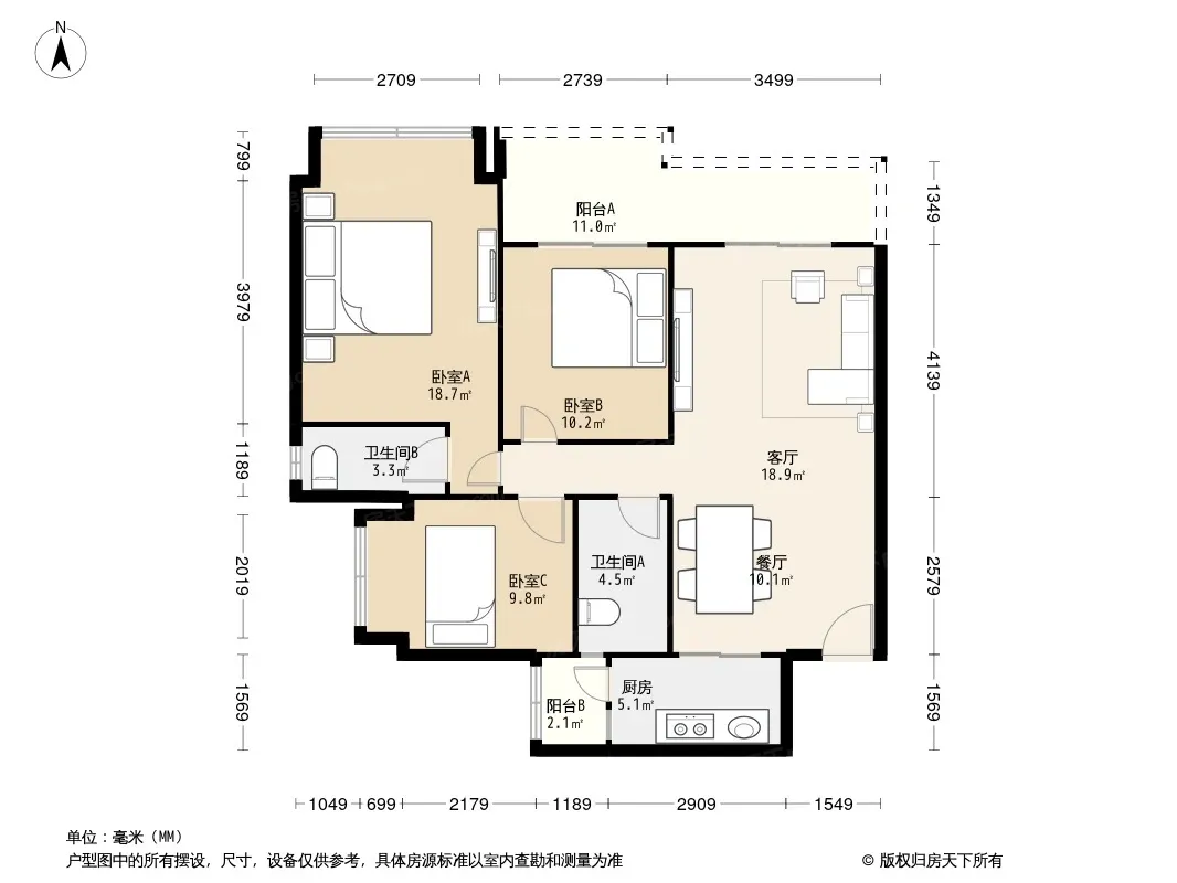 户型齐全,主打双阳台三居