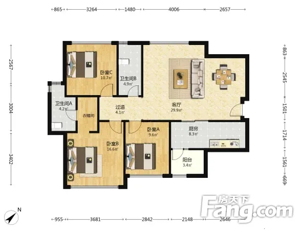 3室1厅2卫