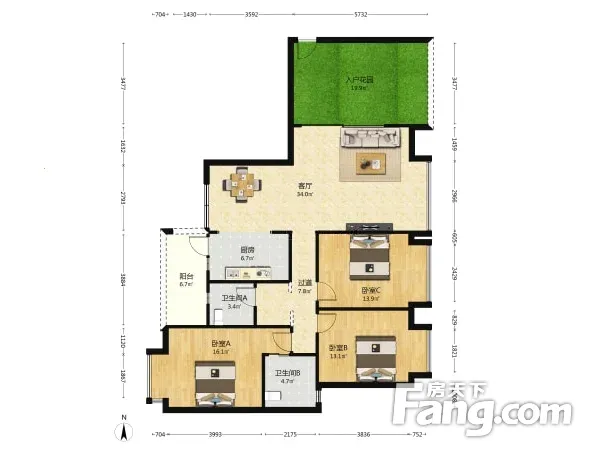 此房满五年,端户对中庭,户型通透带大入户花园,采光爆好 .