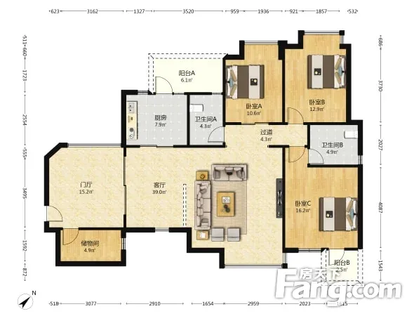 户型齐全,主打户型方正,明厨,独立衣帽间,明卫,主卧朝南三居