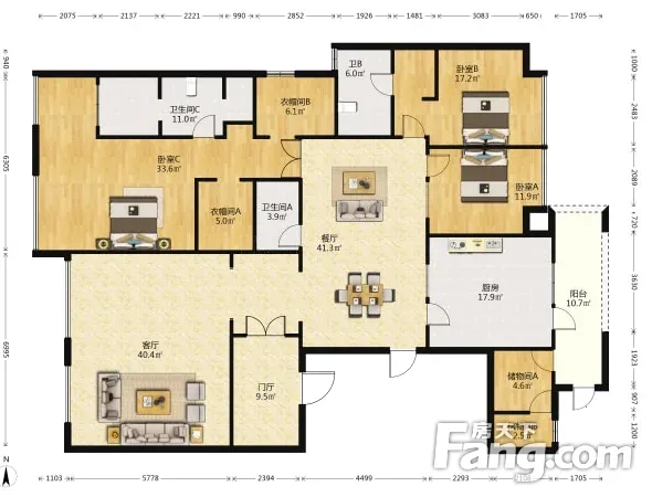 户型齐全,主打独立衣帽间,明卫,客厅朝南三居