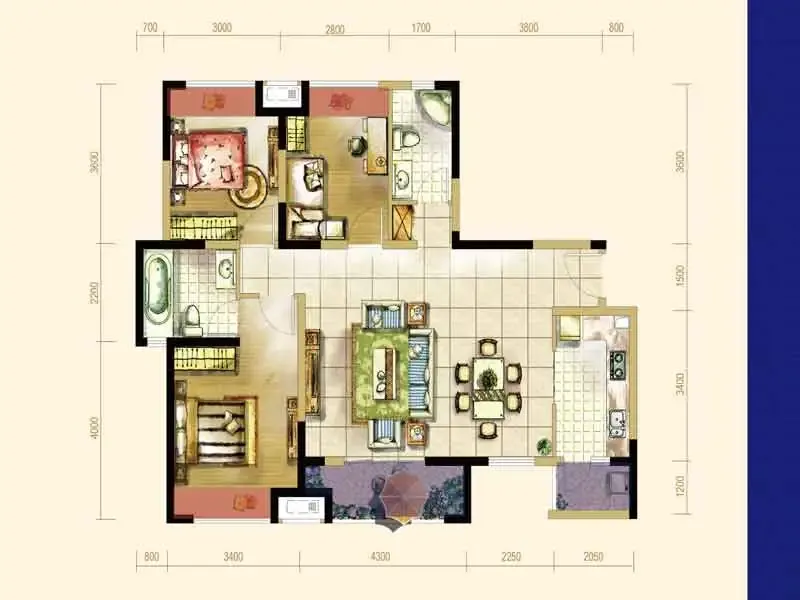 户型齐全,主打户型方正二居