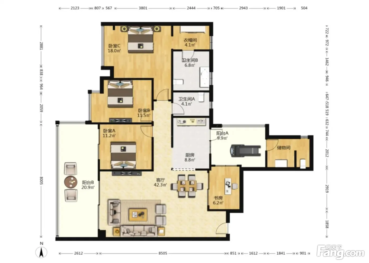 户型齐全,主打户型方正,明卫,双阳台三居