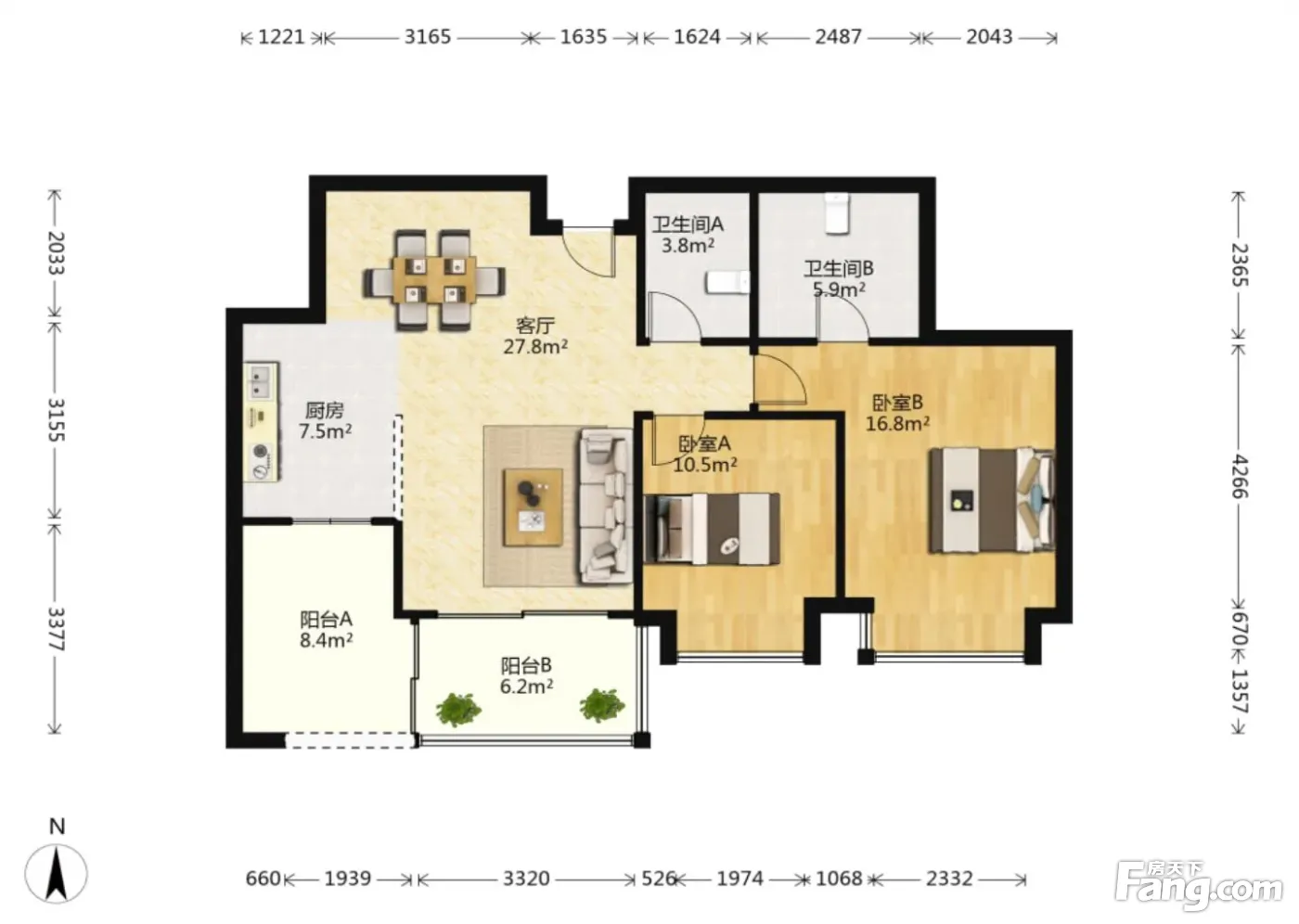 2室1厅2卫