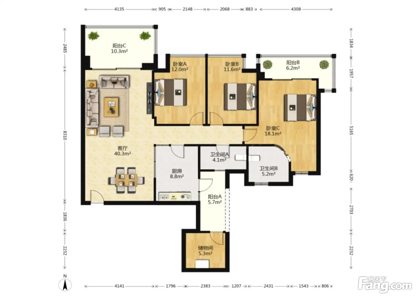 时代豪庭一期 3室1厅 北
