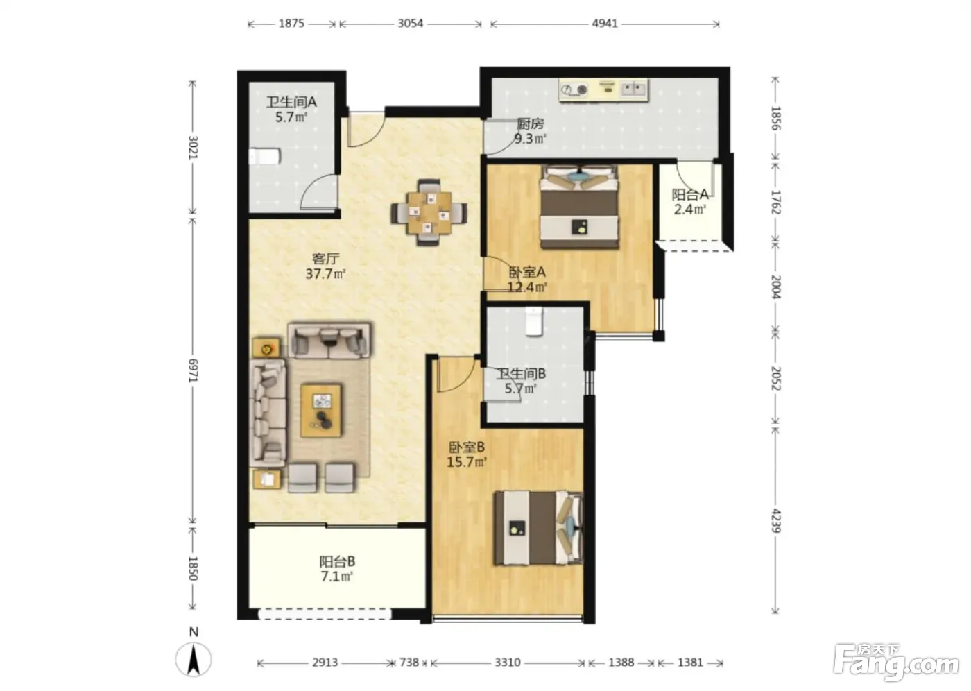 2室1厅2卫