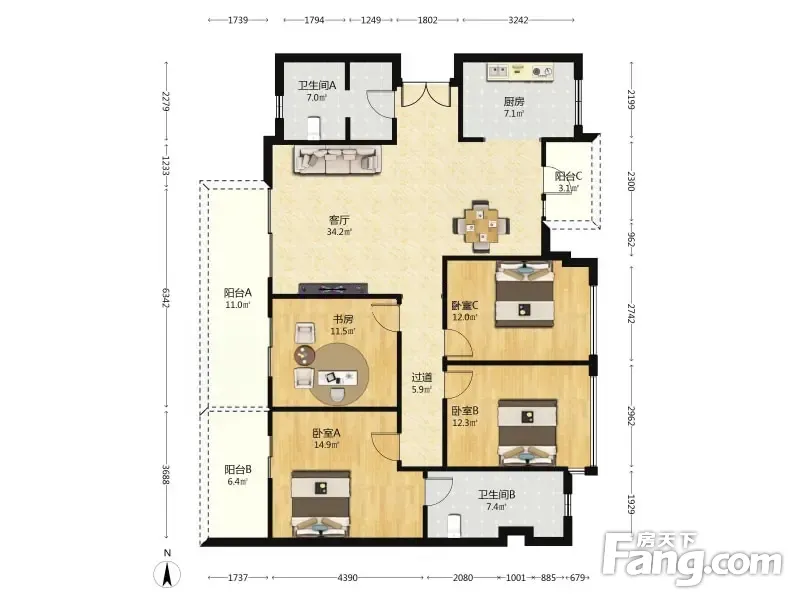 户型齐全,主打南北通透,全明格局四居