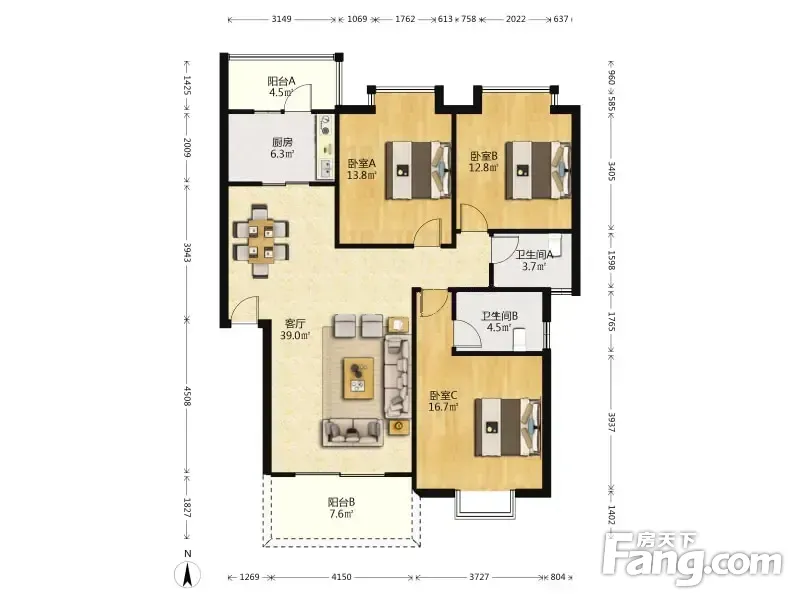 户型齐全,主打明卫,主卧朝南三居