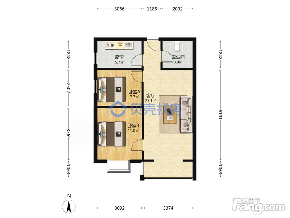 2室2厅1卫
