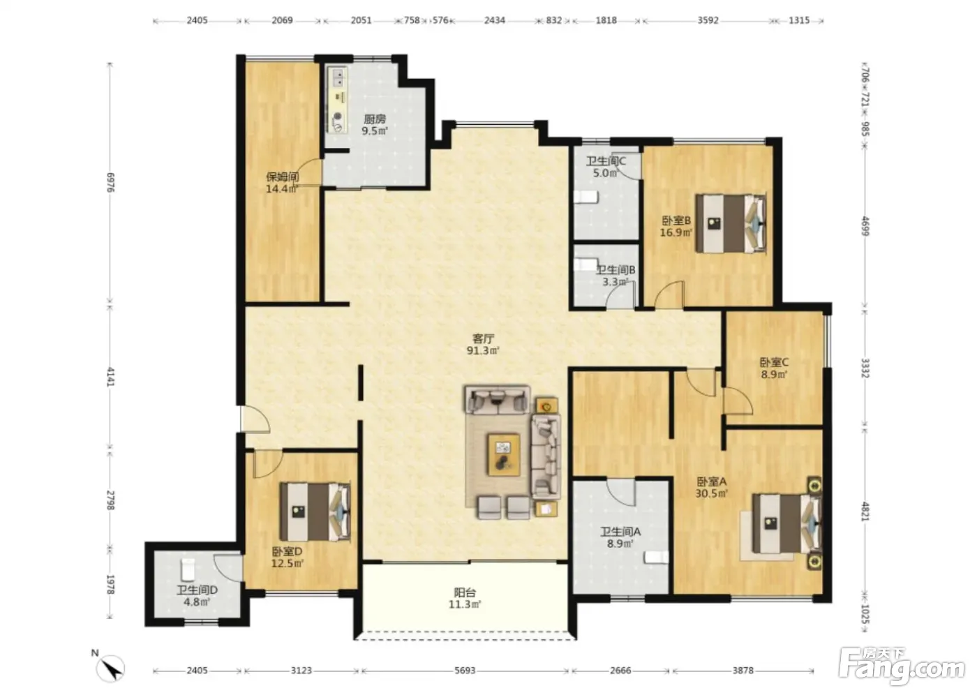 户型齐全,主打南北通透,主卧带卫,带衣帽间,双阳台,餐客分离四居