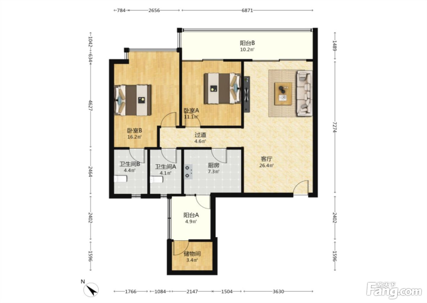 时代豪庭三期 2室1厅 东南 南