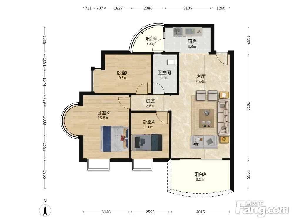 3室2厅1卫