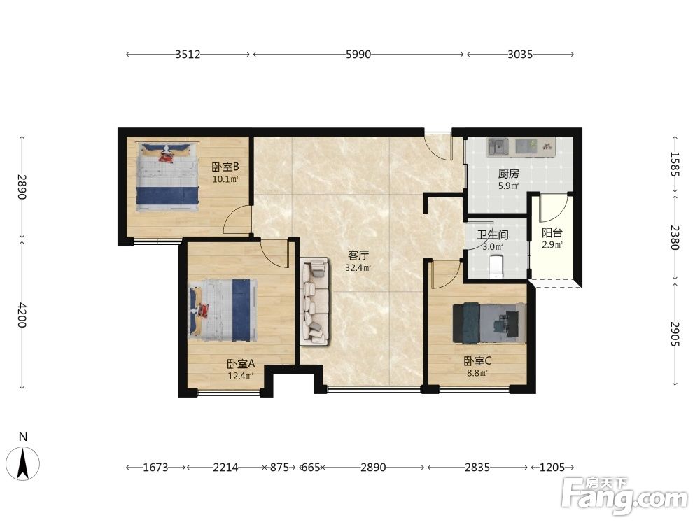 户型齐全,主打客厅朝南三居
