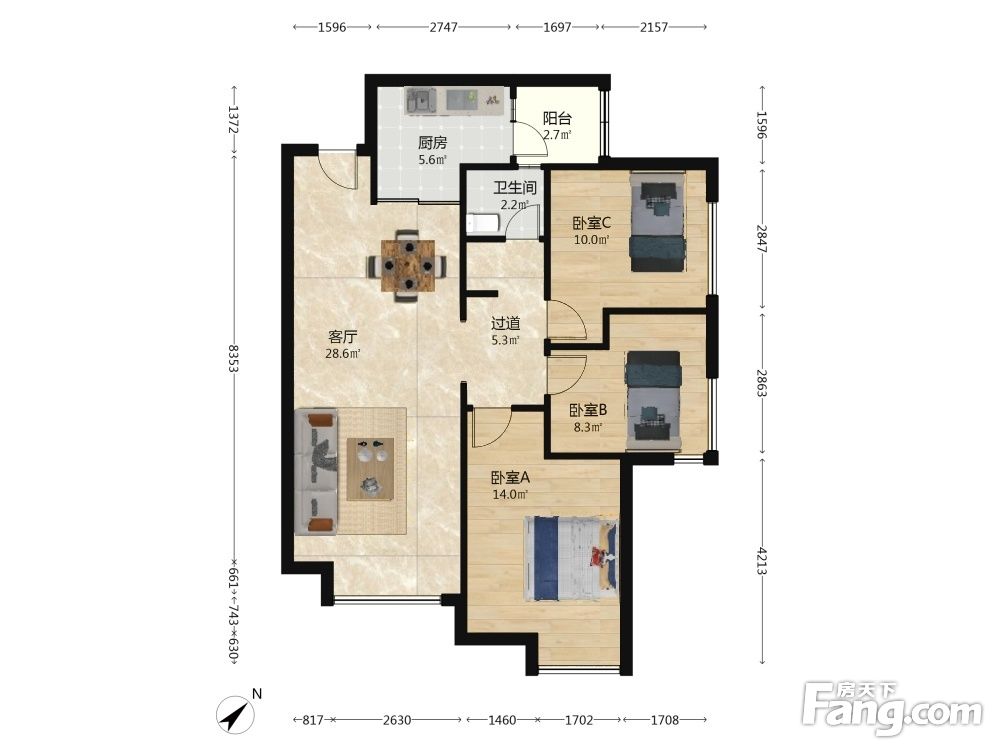 户型齐全,主打明卫,客厅朝南三居