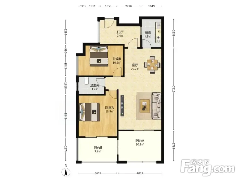 户型齐全,主打户型方正,明厨,客厅朝南二居