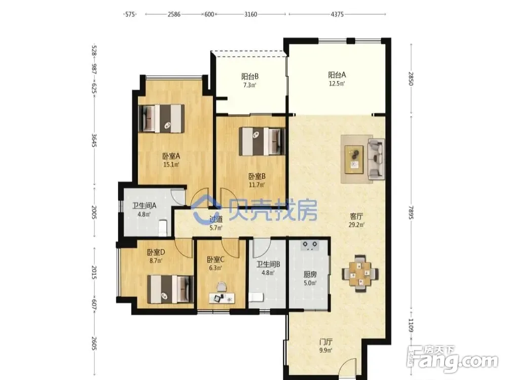 户型齐全,主打户型方正,明厨,明卫,客厅朝南,全明格局,独立衣帽间四居