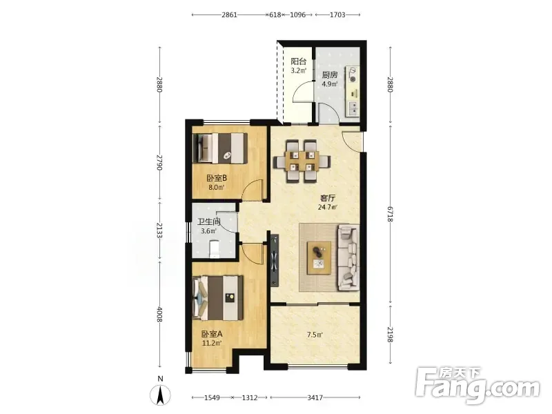 户型齐全,主打明卫,明厨,客厅朝南,全明格局二居